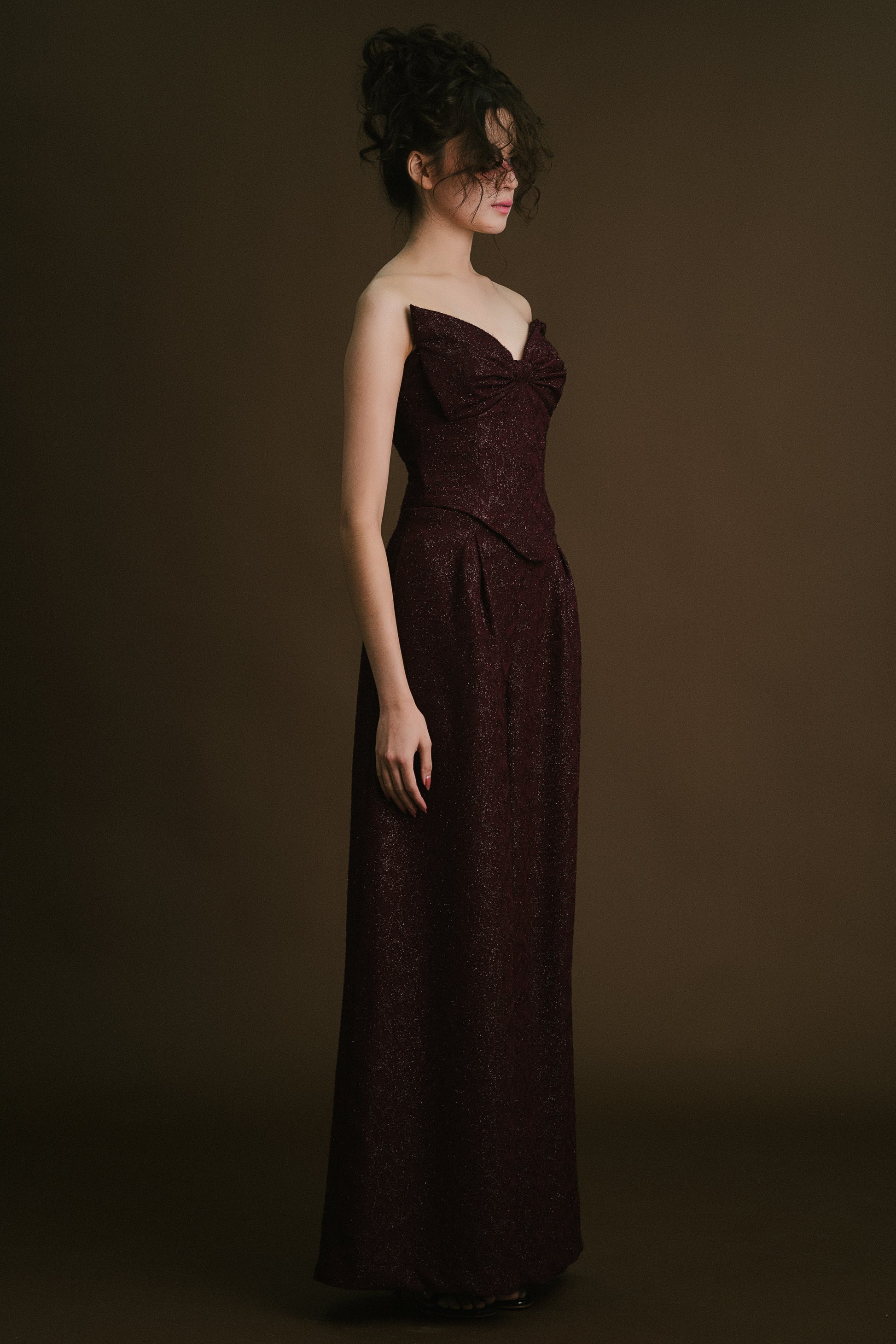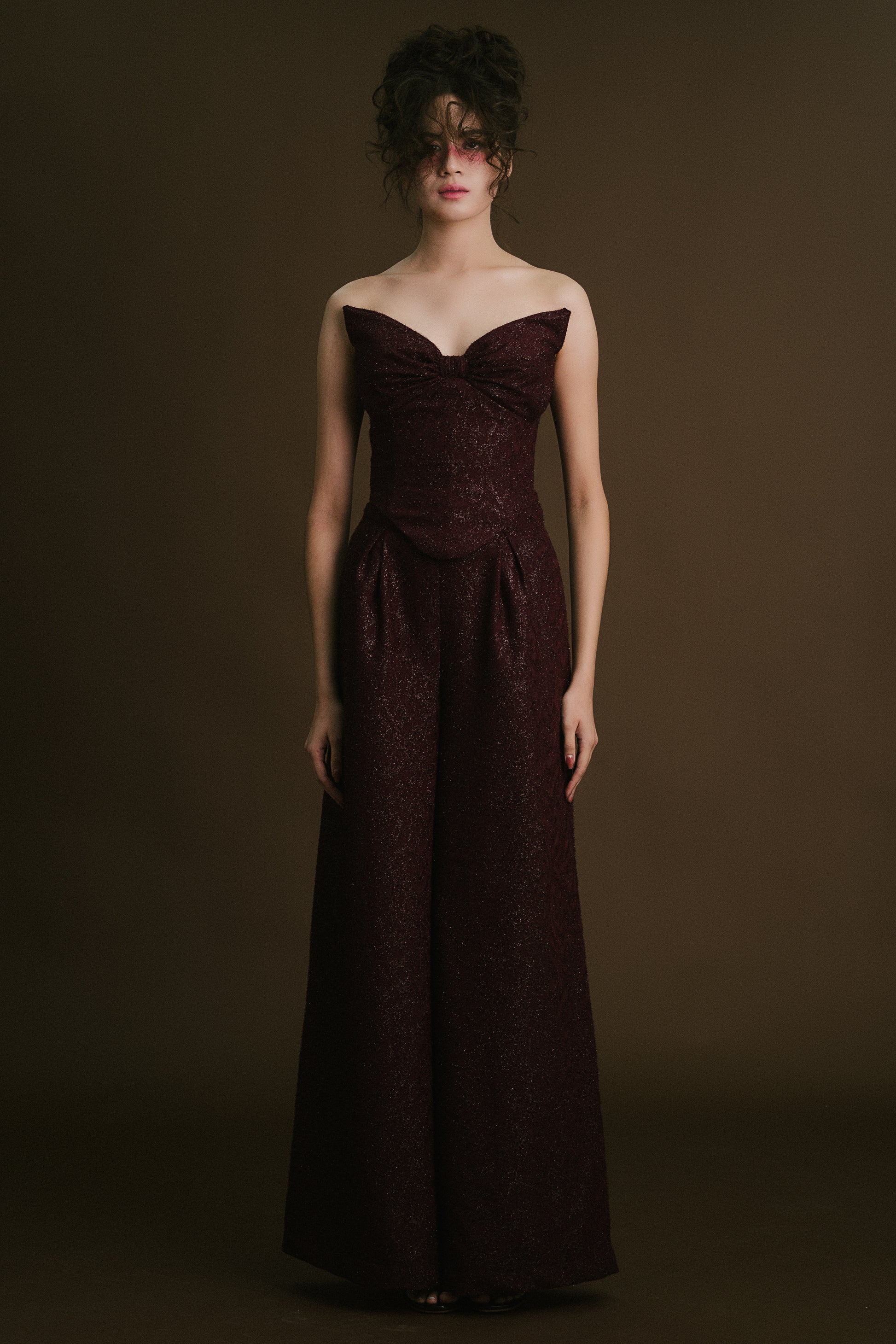 Wine Red Bow Corset Top & Pants (High-Waisted)